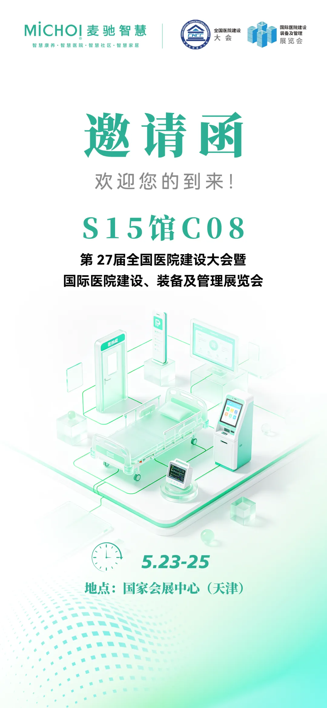 作为全国医院建设领域最具影响力的展会之一,CHCC汇聚了医疗产业链上下游核心力量。第27届全国医院建设大会以“双主题”引领战略方向,以“七会合一”打造知识高地,以“八大主题馆”构建采购闭环,以“AI技术创新馆”抢占科技前沿,以“存量改造”掘金蓝海市场,是一场兼具战略高度、专业深度、科技锐度的行业年度旗舰盛会。麦驰智慧作为智慧医院整体解决方案供应商,专注为医疗机构提供从智能终端到系统集成的全栈解决方案,公司致力于通过技术创新推动中国智慧医疗建设,助力医疗机构实现“数据零孤岛、服务全闭环”的数字化转型目标。本次展会麦驰智慧携最新的基于鸿蒙系统技术架构的智慧医院系统产品全新亮相,麦驰智慧已在智慧医院国产化与新一代操作系统生态领域迈出重要一步。