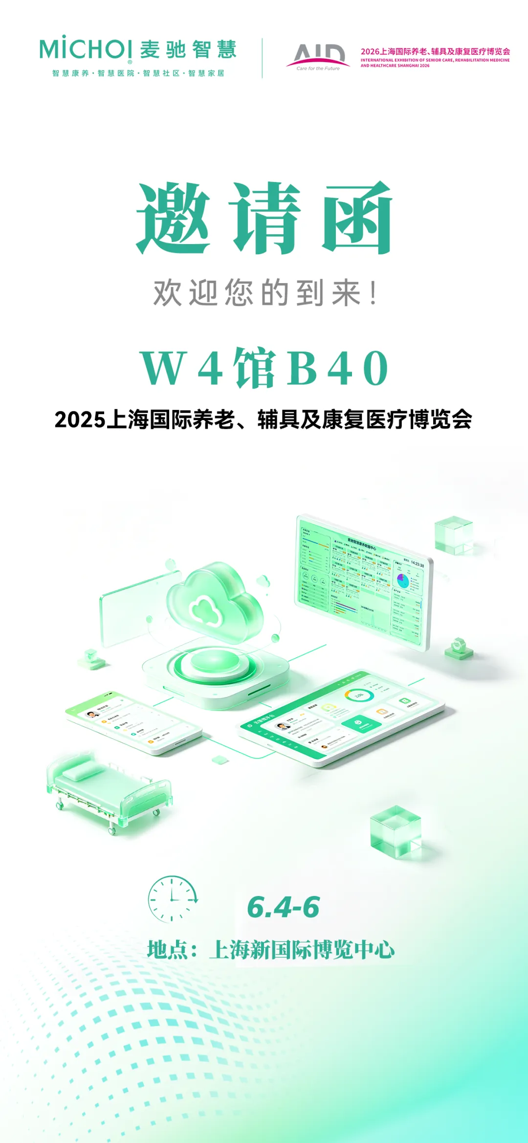 2026年春夏之交,麦驰智慧将连续登陆两座城市、三大行业标杆级展会,带来最新产品、技术成果与场景化解决方案。从医疗健康到公共安全,再到智慧养老三场盛会,一份初心——我们期待与您面对面交流,共探行业发展新路径。诚挚邀请您莅临展位,不见不散。