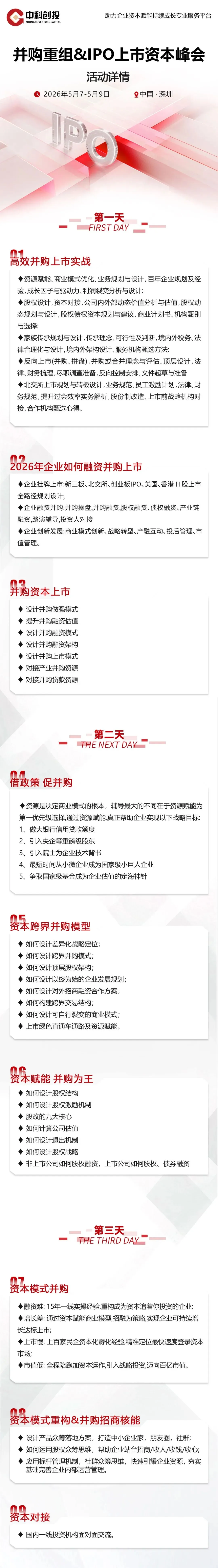 为了方便广大企业家掌握投资人的详细信息,了解资本市场更青睐哪种企业,清楚知道企业在并购、融资、上市之前存在哪些不足,中科商业联合了各大知名投资机构,为广大企业家带来了一场与资本近距离的学习和对接盛会。
