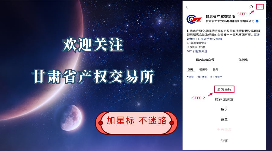 将『甘肃省产权交易所』公众号设置为“星标★”