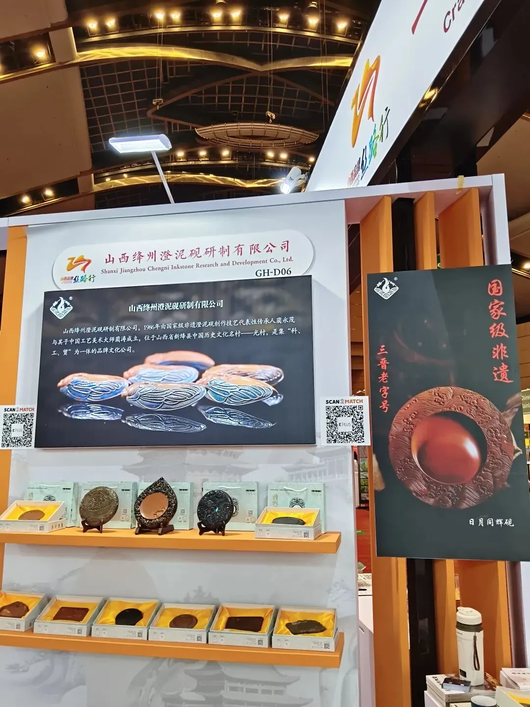 我省以“三晋非遗匠心,东方礼赠雅韵”为主题设展,精选22家晋企百余种精品参展。作为运城市三家参展企业中唯一的非遗文化代表,中国四大名砚之一、国家级非物质文化遗产、“山西三宝”——绛州澄泥砚一亮相便成为全场瞩目的文化亮点。