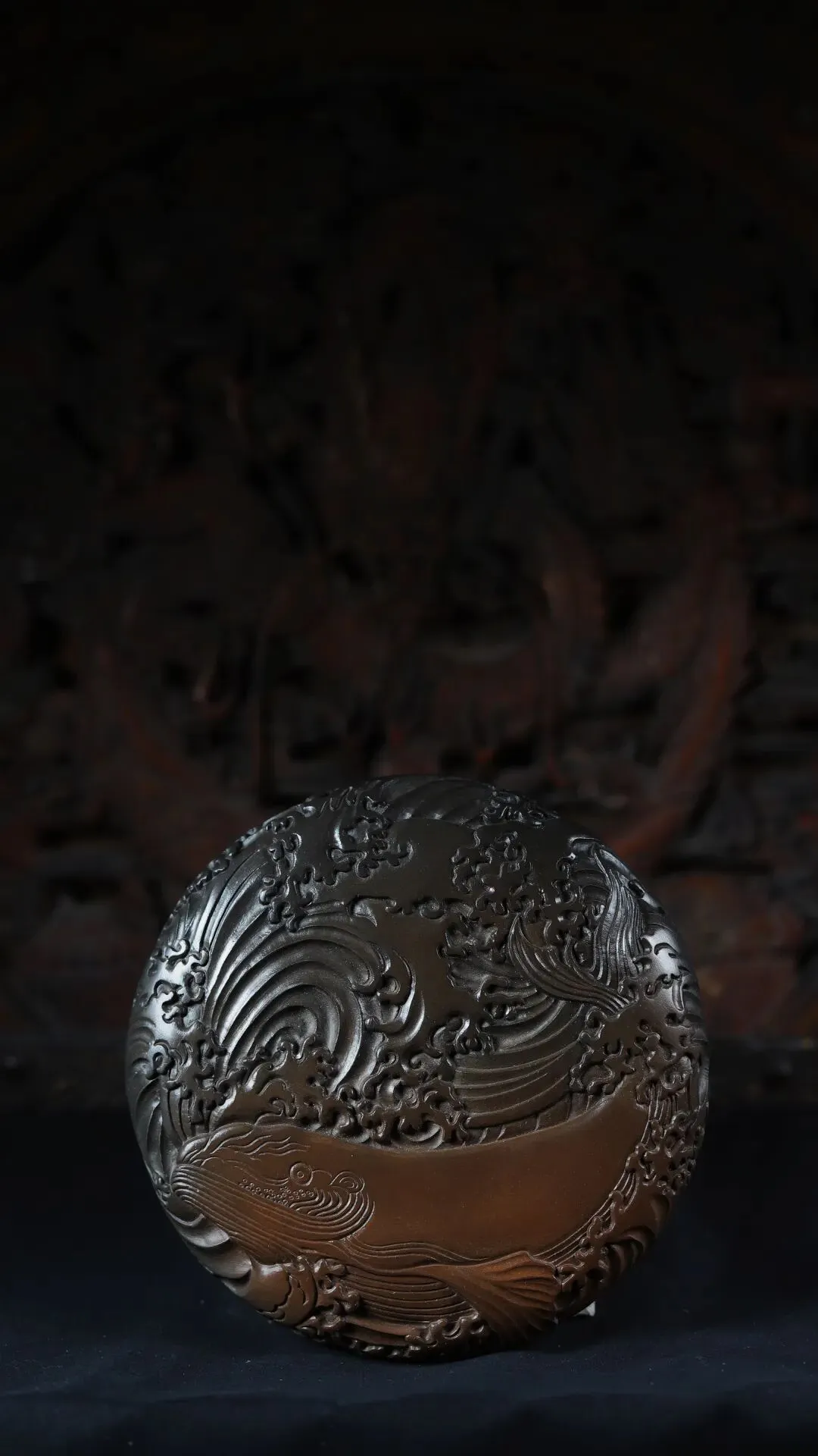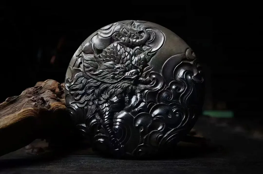 采用罕见墨色澄泥精心打造,麒麟踏云雕刻栩栩如生,线条流畅细腻,寄寓文运亨通、福泽绵延的美好祝愿。