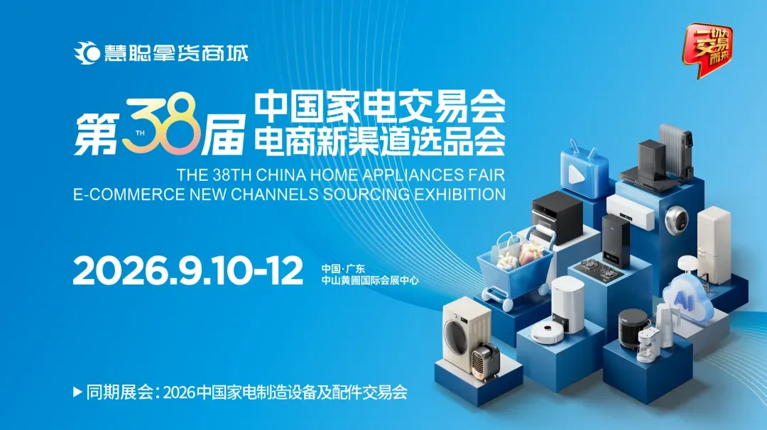 2026年9月10日-12日,第38届中国家电交易会电商新渠道选品会同期2026中国家电制造设备及配件交易会,落地中山黄圃。现诚挚邀请广大参展商、采购商及行业同仁莅临参会,对接源头工厂好货,深挖渠道合作机遇,抢占下半年市场先机!