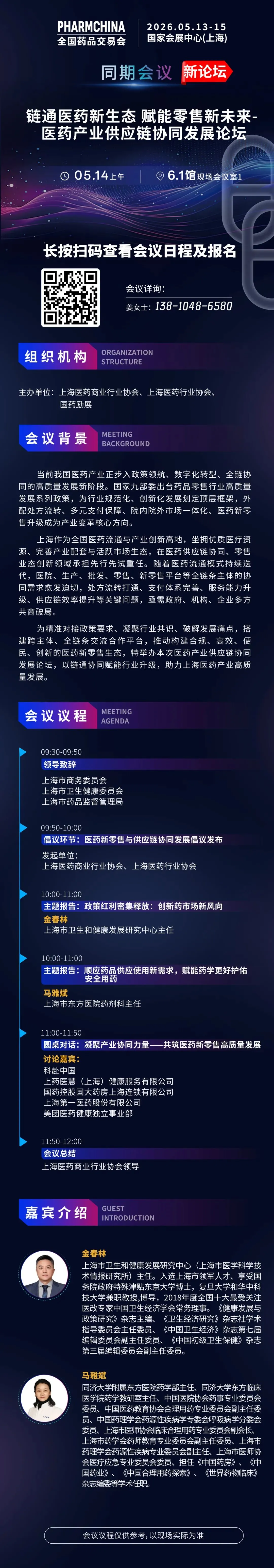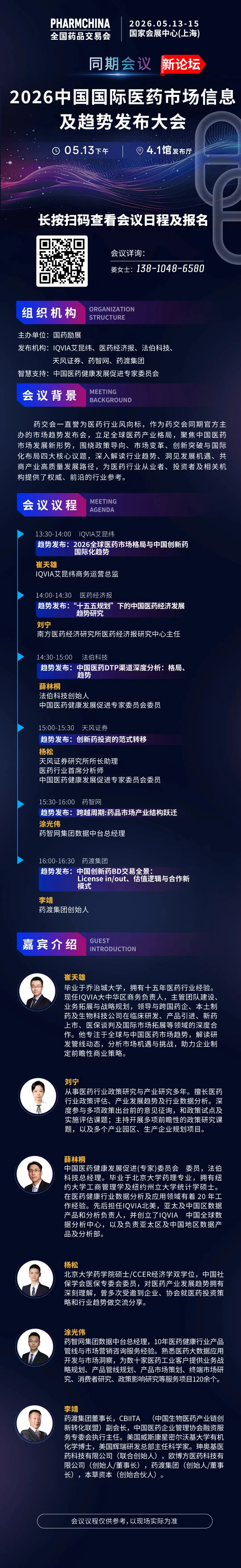 展会期间将与来自海内外医药、健康营养产业近3000家参展企业、预计吸引20万人次的行业专业观众参观。展会同期将举办72场会议论坛,汇集400余位演讲专家,预计吸引1万+参会代表前来参会。盛邀政府领导、行业协会、资深行业专家、品牌企业领袖,从医药健康全产业链的新质生产力、政策研判、市场营销、研发创新、跨界机遇、国际合作等多个领域,深入解读行业趋势、洞见发展机遇、促进交流合作。