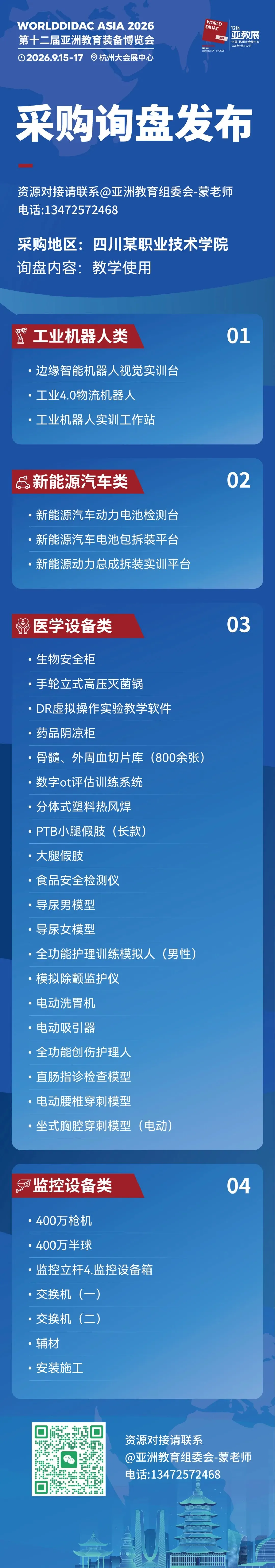 【采购直通车】2026亚教展工业/新能源/医学/监控,四大类教学设备采购需求发布,等你来对接!