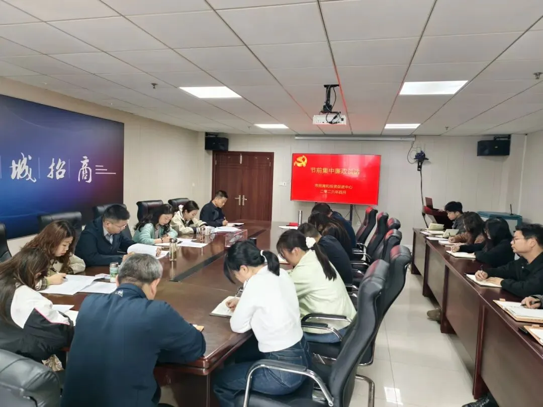 为严明节日期间纪律作风,筑牢廉洁自律思想防线,确保全体干部职工度过一个风清气正、平安祥和的“五一”假期,4月29日,市招商和投资促进中心召开全体干部大会,传达学习上级精神,开展节前集中廉政谈话。中心及分局全体干部参加会议。