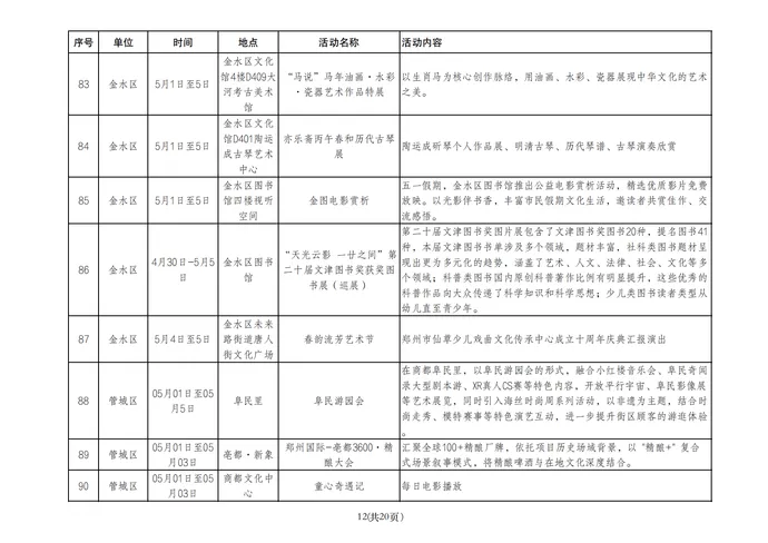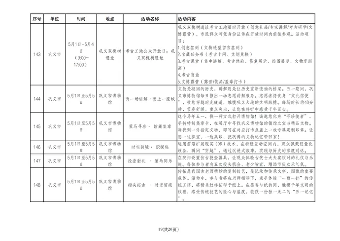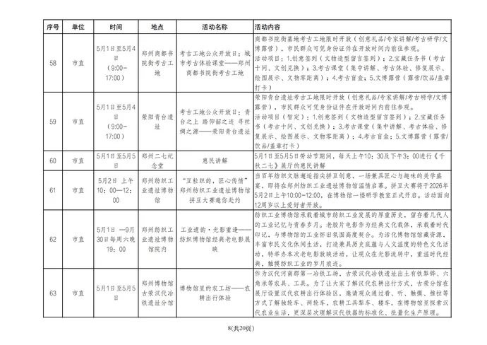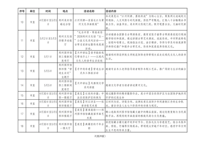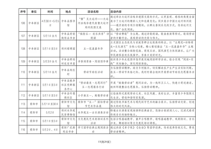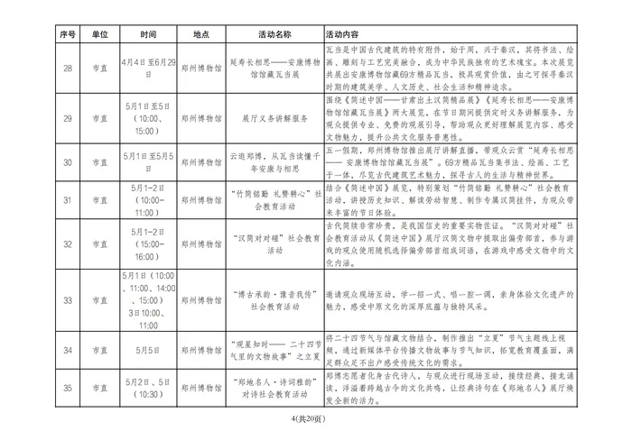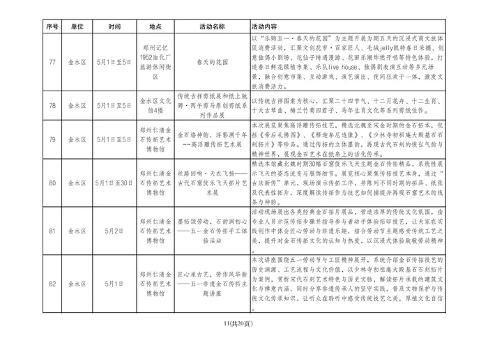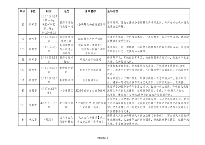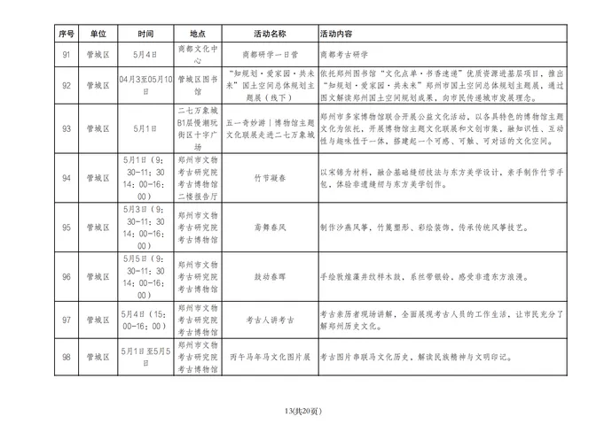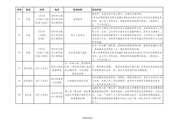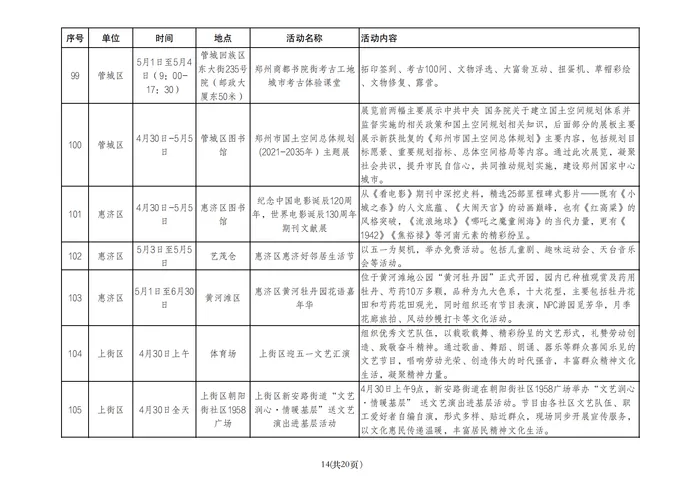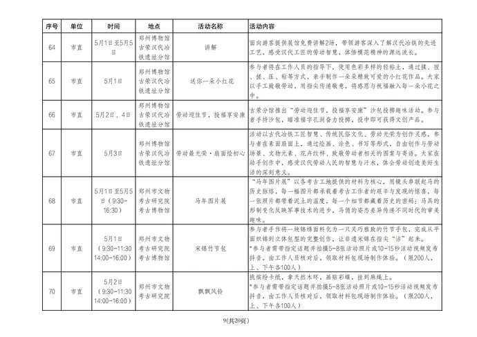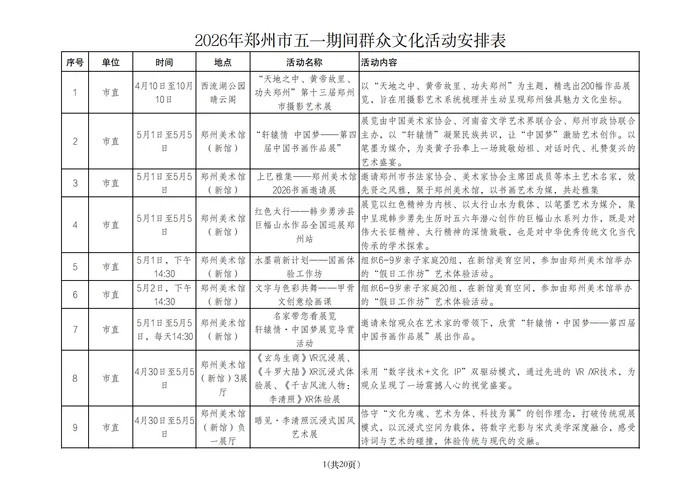 “五一”假期即将开启,郑州市各大文化部门、文博场馆、景区为市民游客精心准备了150余项特色活动,从重磅展览到非遗体验,从经典诵读到XR探秘,带广大市民游客度过充实而有趣的假期时光。