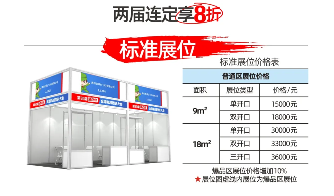 ? 小提示:爆品区位于展馆核心位置,客流更集中,适合主打爆款产品的品牌;两届连定可享 8 折优惠,降低参展成本。