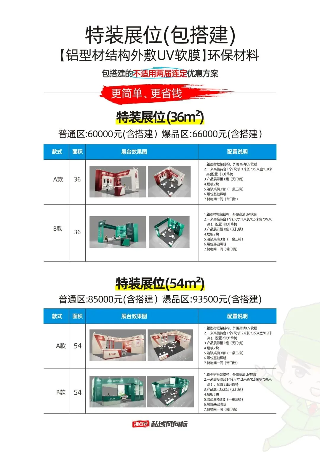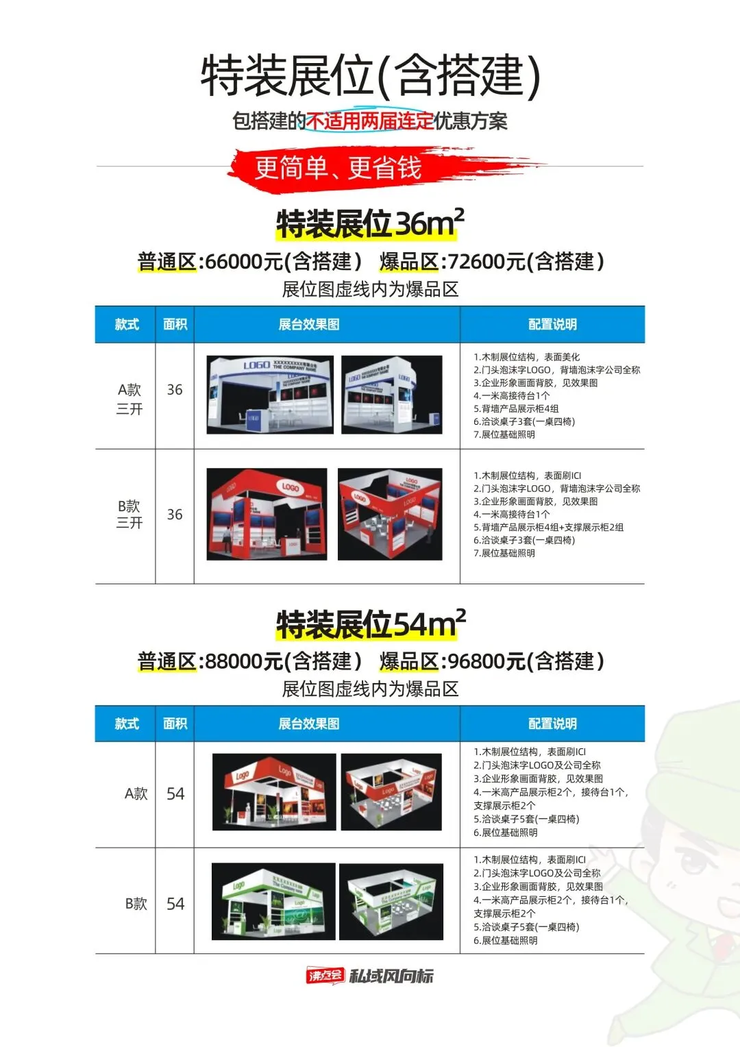 适合有成熟搭建方案、想打造专属品牌形象的头部企业,36㎡起订,可自行搭建,自由度拉满: