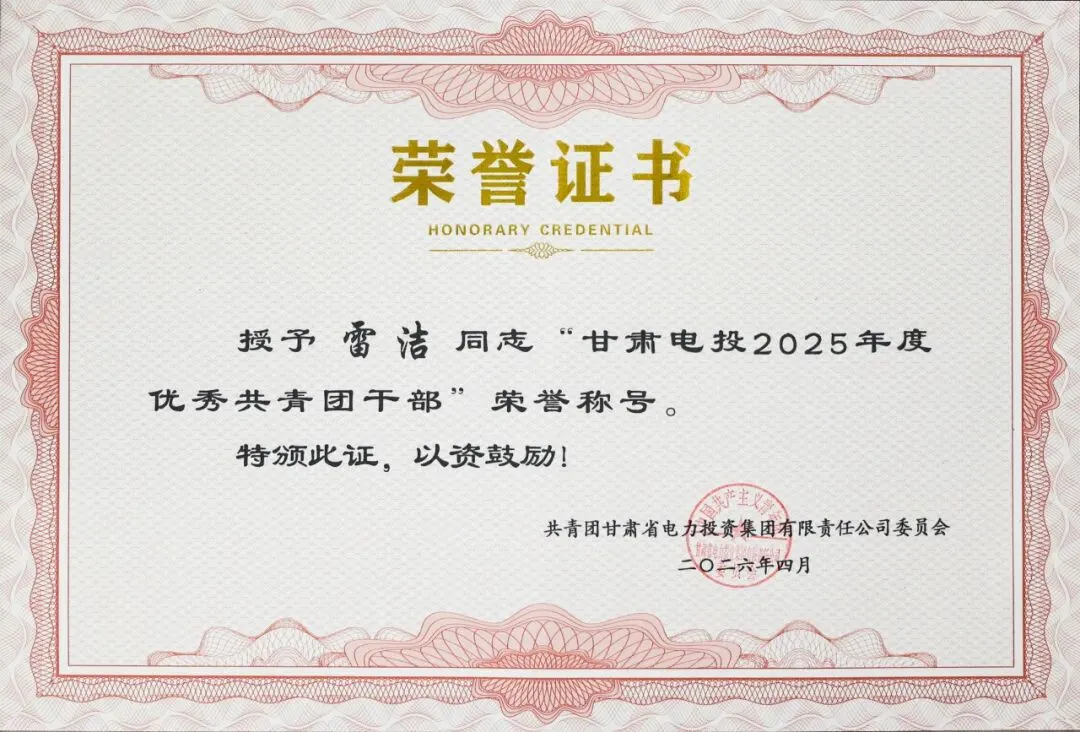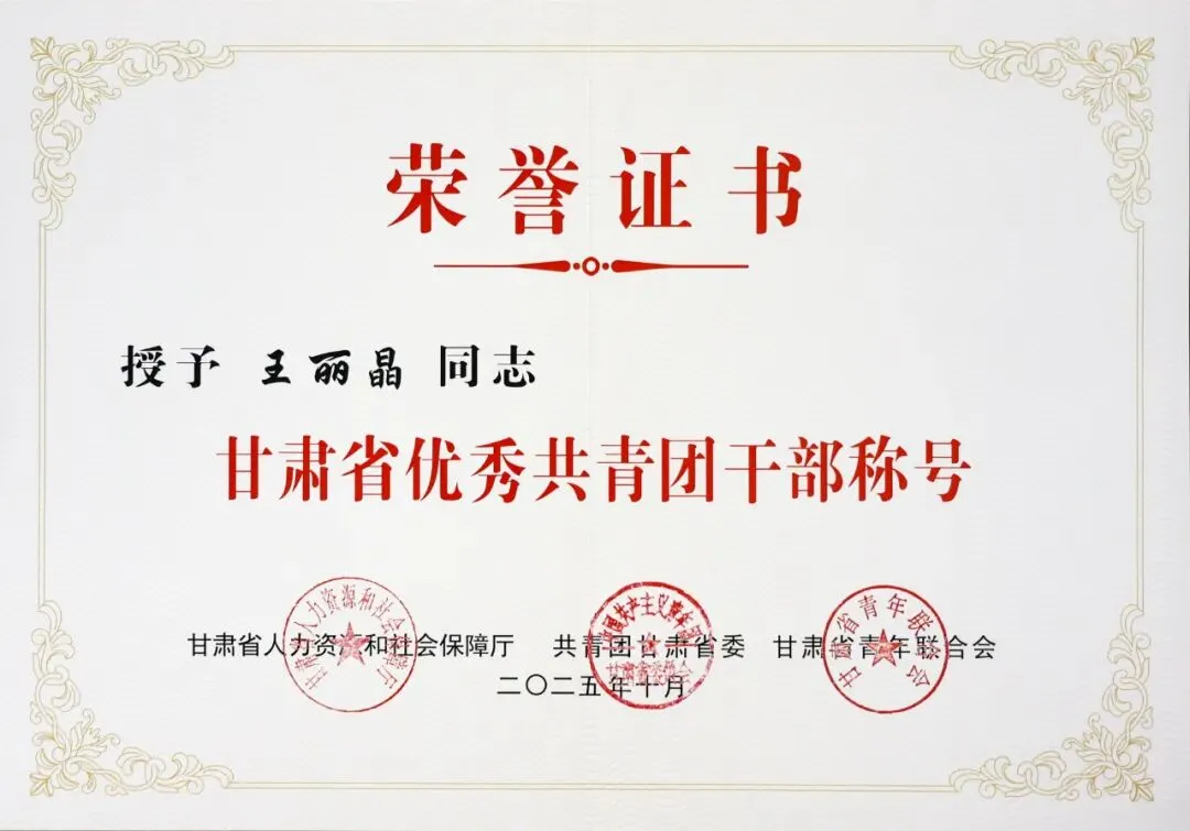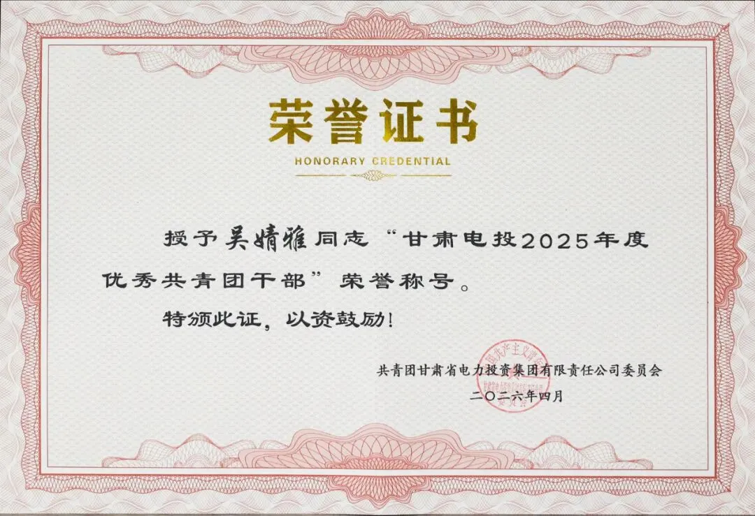 会展青年奋勇争先、载誉而归。王丽晶荣获“甘肃省优秀共青团干部”称号;吴婧雅、雷洁荣获“甘肃电投优秀共青团干部”称号;吴卓霖荣获“甘肃电投优秀共青团员”称号,以实际行动诠释了新时代青年的责任与担当。