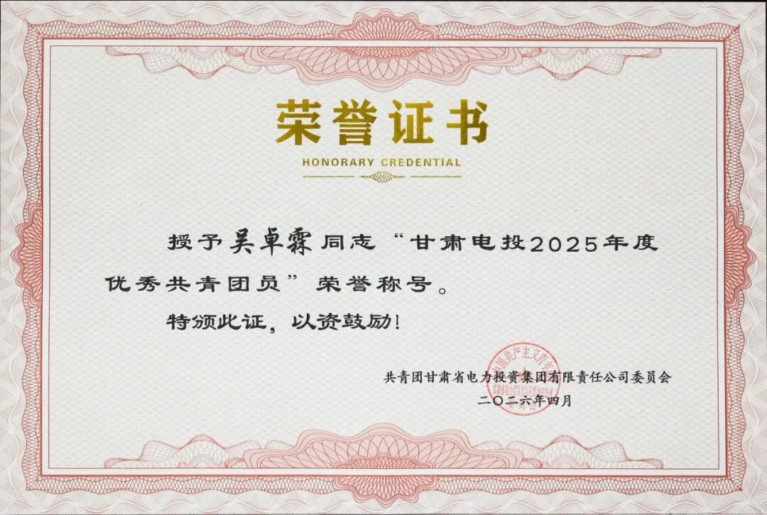 这份荣誉既是鼓励,更是前行动力。甘肃电投会展集团团委将以此为契机,再接再厉、守正创新,不断提升团组织引领力、组织力、服务力,团结带领全体青年以更昂扬的姿态、更务实的作风,为甘肃电投持续健康发展贡献青春智慧与力量。