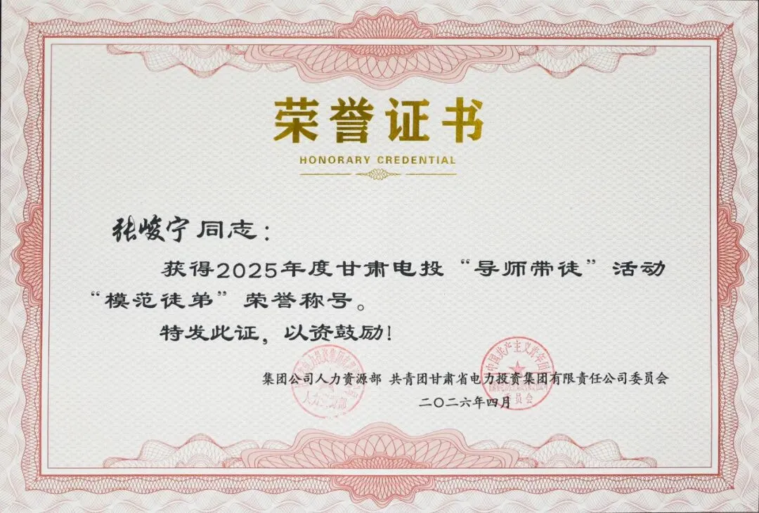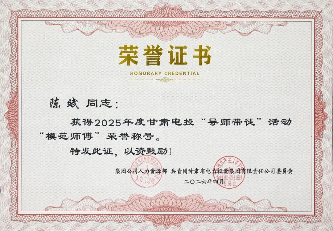 传帮带促成长,匠心育新人。甘肃电投会展集团陈斌、张峻宁荣获“甘肃电投导师带徒模范师徒” 称号,以师带徒、以行践知,为集团青年人才培养注入强劲动力。