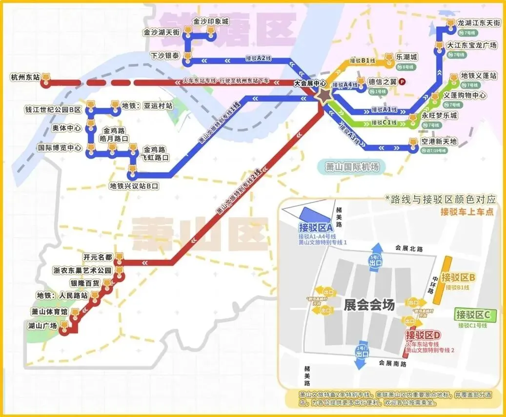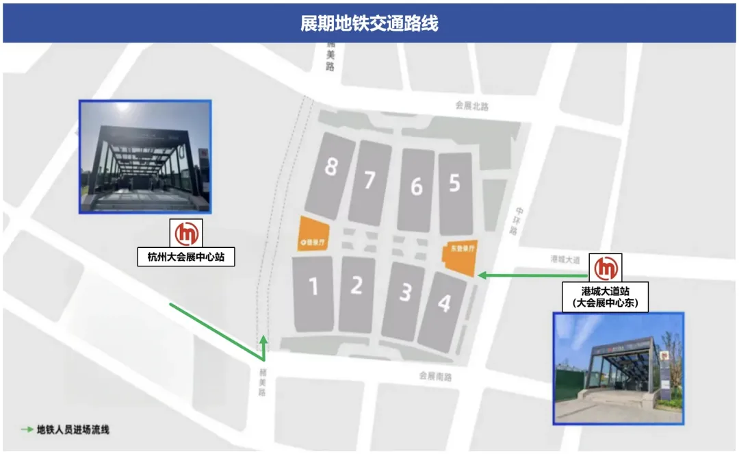 会展期间,预计前往观展人流、车流量大。杭州大会展中心周边停车资源不足,会展中心地下停车场不提供停车服务。公共交通出行会更加便利,请观众选择绿色出行。