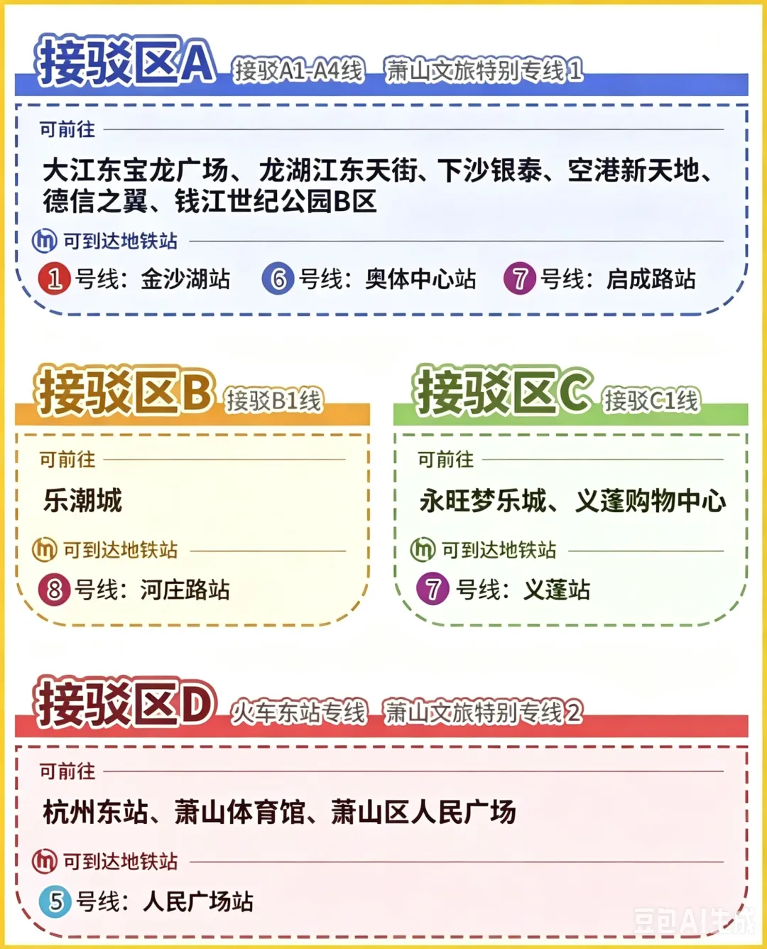 各乘车点可直达的标志性地点和地铁站如下: