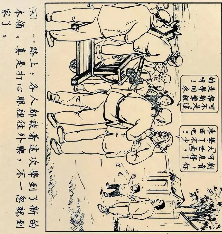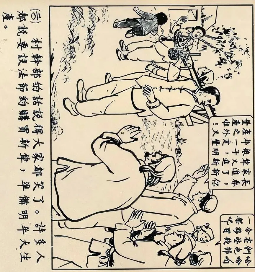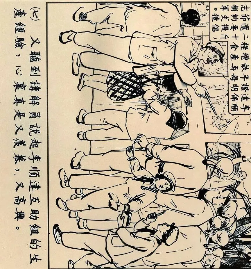 从“花布”到“新鏵”,这个转变意味深长。花布代表的是消费、是眼前的享受,而新鏵代表的是生产、是长远的希望。刘贵的选择,体现了一种“先生产后生活”的价值取向。在那个百废待兴的年代,这种观念无疑具有重要的现实意义。连环画的最后一幅画面中,“许多人都说要设法节约购买新鏵,准备明年大生产”——这不仅是刘贵一个人的觉悟,更是一个群体的觉醒。