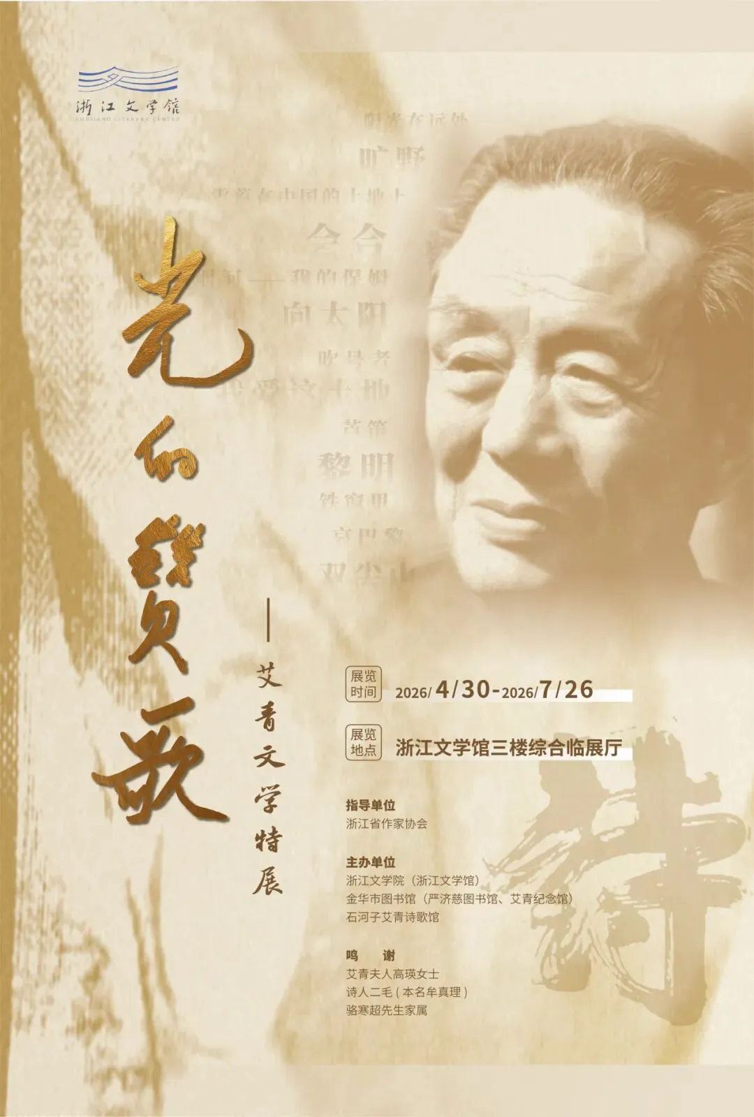 诗人远去已三十载,纵使时序更迭,清光往复,依旧诗意不朽,光芒长存。本次特展以诗人创作脉络为引,全景呈现其八十六载追寻光明的生命轨迹,深度聚焦艾青文学生平与艺术留存,汇集与艾青相关的珍贵手稿、文献史料、书画墨迹,以实物为媒、以史料为证,立体还原文学大家的创作轨迹与人文风骨。