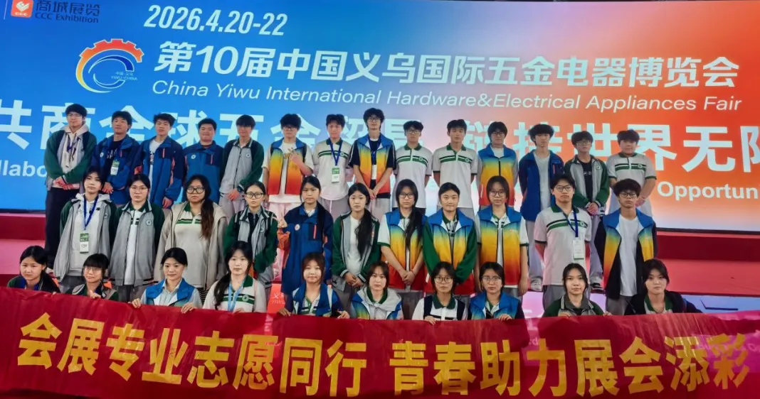2026年4月20日至22日,“第10届中国义乌国际五金电器博览会”在义乌国际博览中心盛大举行。这场盛会汇聚了国内外众多五金电器企业与专业买家,义乌市国际商贸学校23级会展服务与管理班全体同学,在义乌义乌工商职业技术学院的资源对接与精心安排下,有幸参与了此次专业实践活动,真正实现了“课堂与岗位零距离对接”。