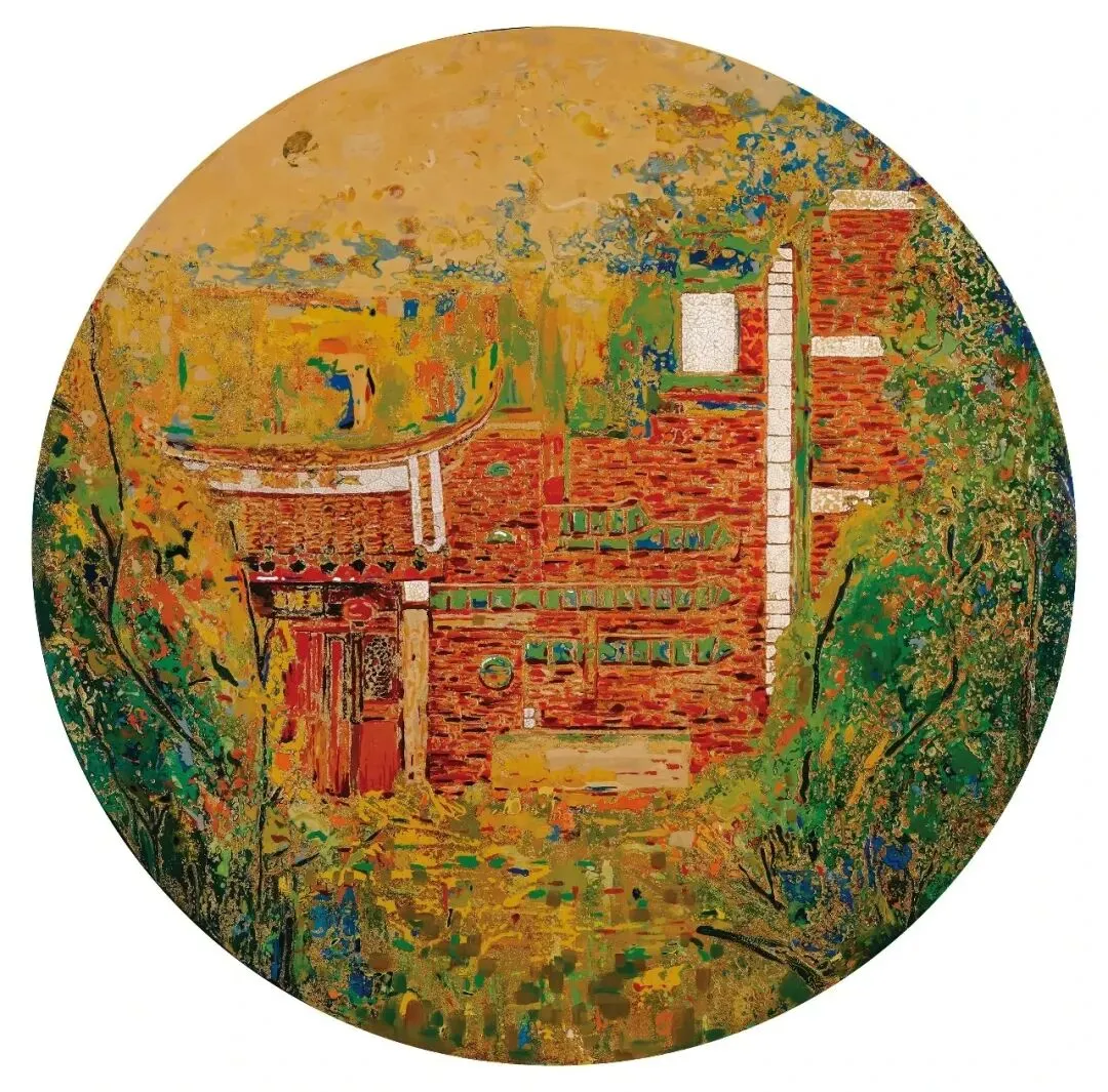 张雨菲《厝间点翠》漆画60x60cm 山西