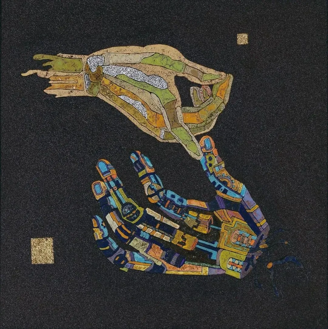 郑伟强《手创新时间》漆画 50x50cm福建