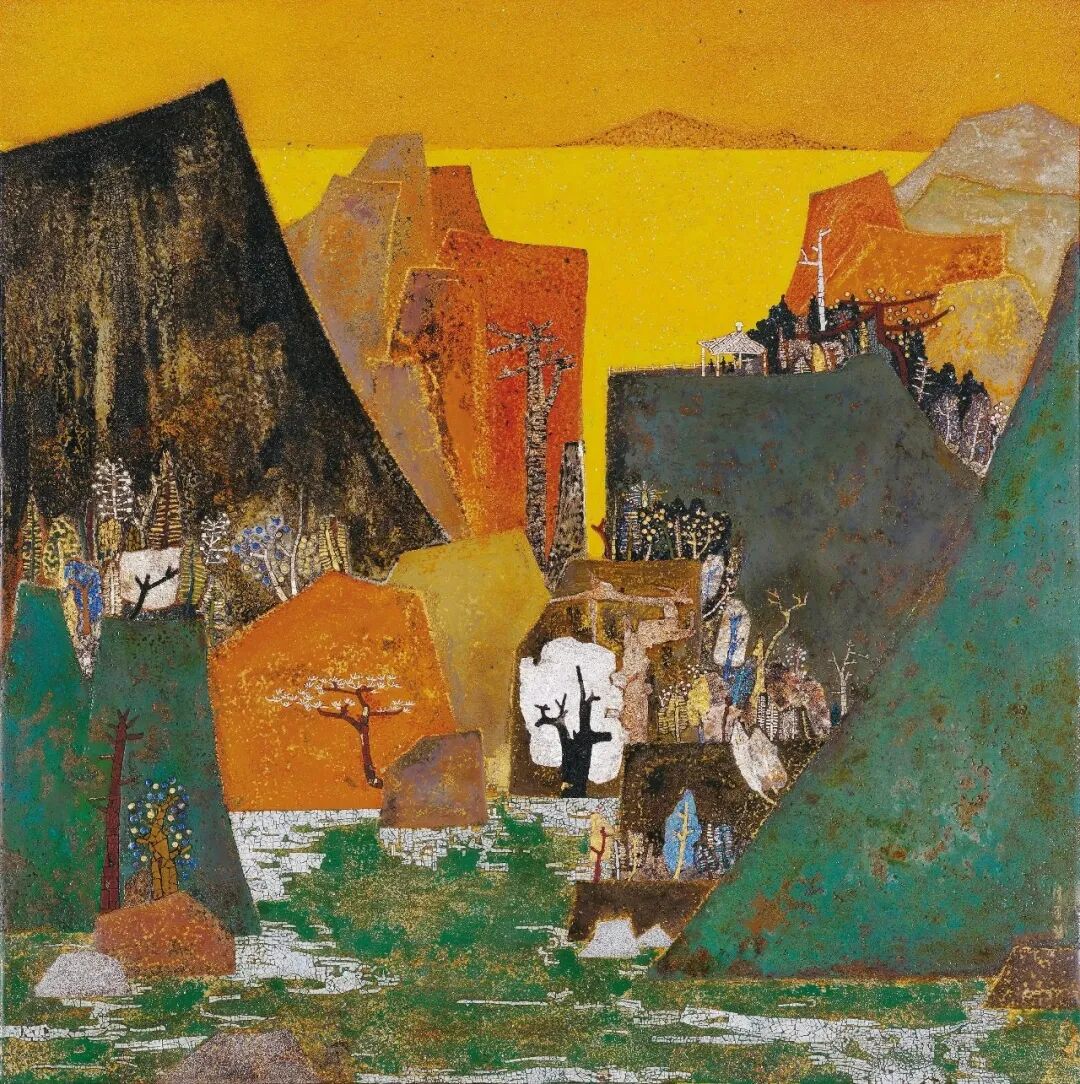 钟誉《折叠的风景》漆画60x60cm福建