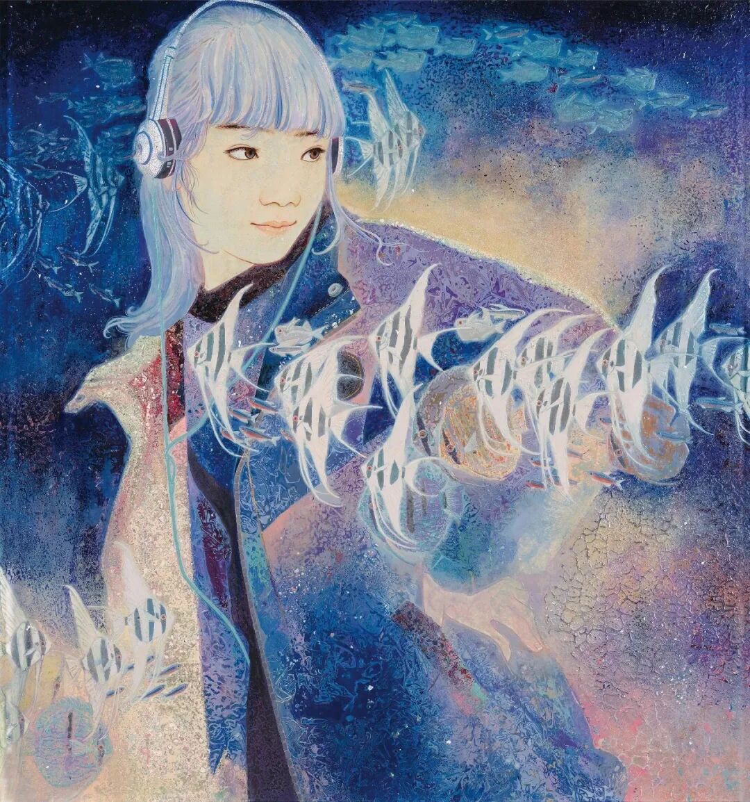 张艺泫 武毓航《蓝色空间的碎片》漆画 河南