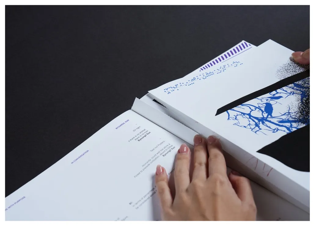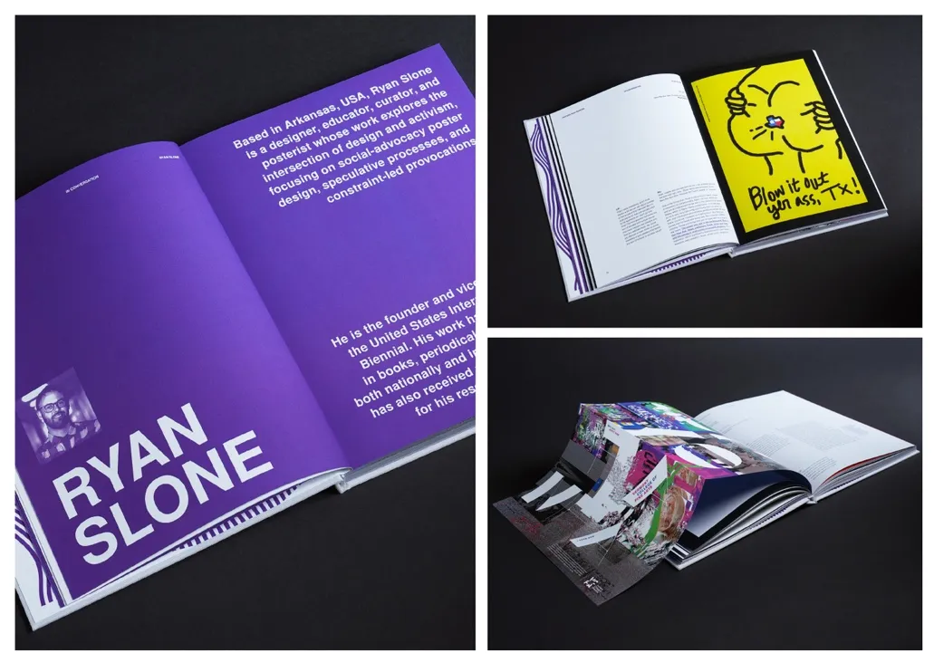 丽莎·温斯坦利:我在英国长大,但已有15多年未在当地生活。2010 到 2018 年我在中东生活,之后就一直住在新加坡。这些跨文化的经历,深深影响了我怎么思考、怎么创作,也影响了我对作品受众的理解。身处阿拉伯文化,现在又在东南亚文化里,我的世界观被彻底刷新了。我慢慢放下了以前那种以西方为中心的视角,开始重新思考,我的作品应该传递哪些人的声音。这次参展的书籍就跟这个思考有关,书里收录了三大洲的艺术家的作品,他们的创作视角各不相同,这跟我的创作经历特别契合,也让我更具体地感受到,在不同社会文化背景下,设计方式会带出哪些不同层次的意义和理解。