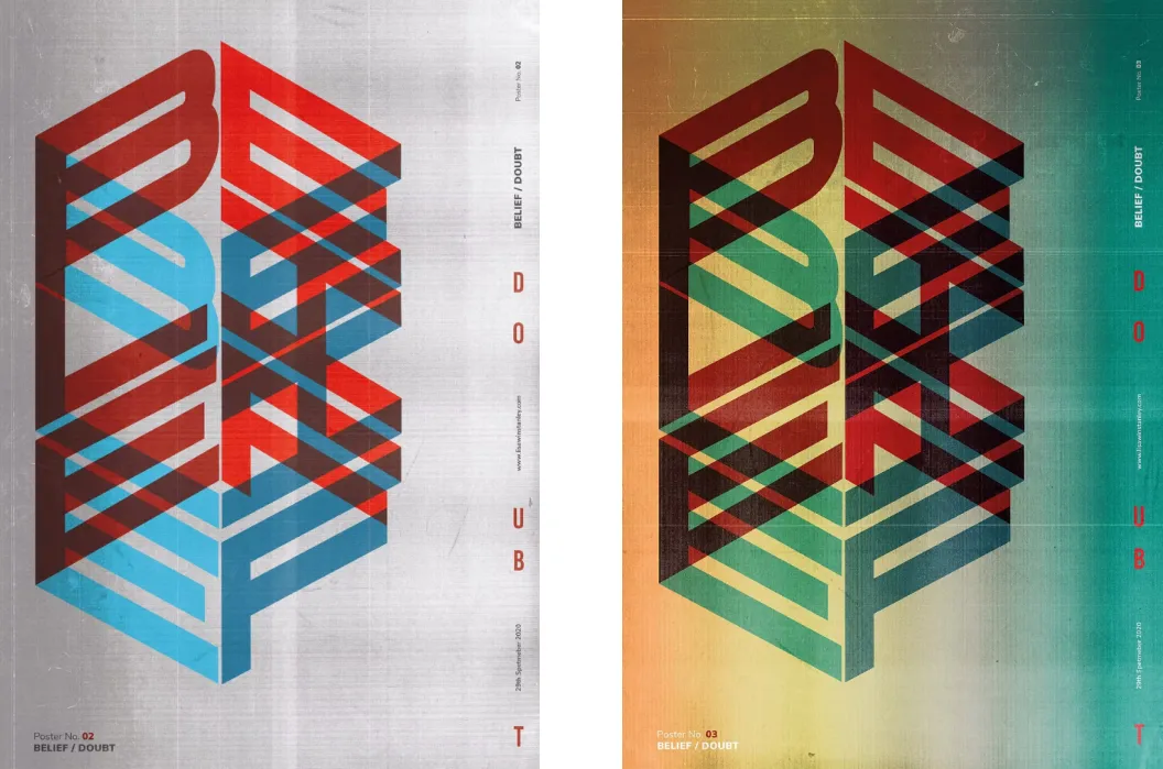 海报以字体视觉语言,呈现我们日常生活中直面的二元对立——工作与玩乐、专注与休憩的两极,始终在考验着我们。而设计教育也将在这种二元性中完成蜕变,重塑后疫情时代的形态,以期寻得平衡。