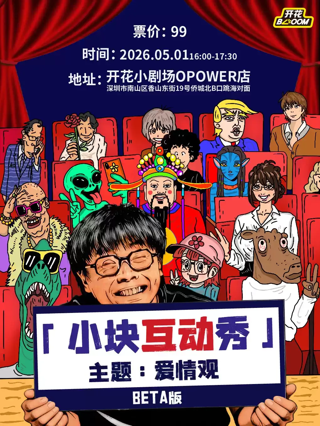 小块作为脱口秀主持人,是大家公认的“暖场王”!控场稳、笑点密、互动强,自带亲和力!不管坐前排还是后排,主动一点就能被他cue到,每个人都能沉浸式参与,参与感直接拉满!
