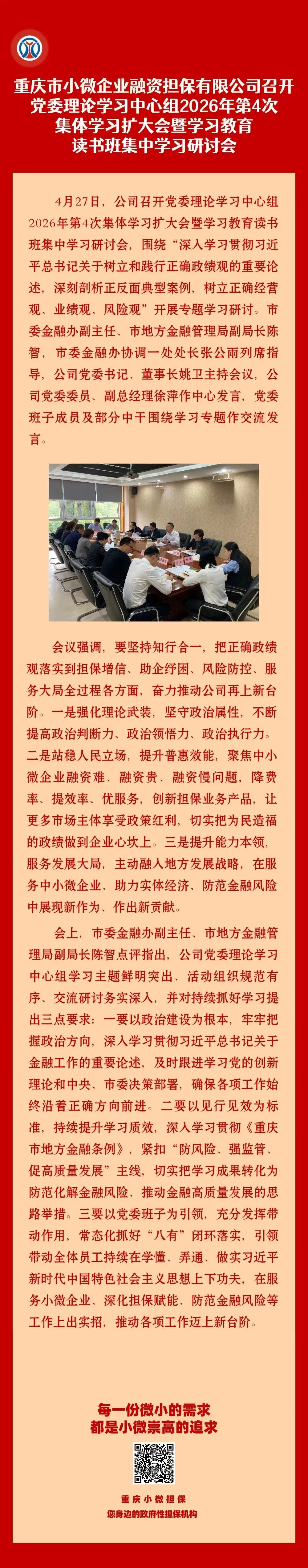 重庆市小微企业融资担保有限公司召开党委理论学习中心组2026年第4次集体学习扩大会暨学习教育读书班集中学习研讨会