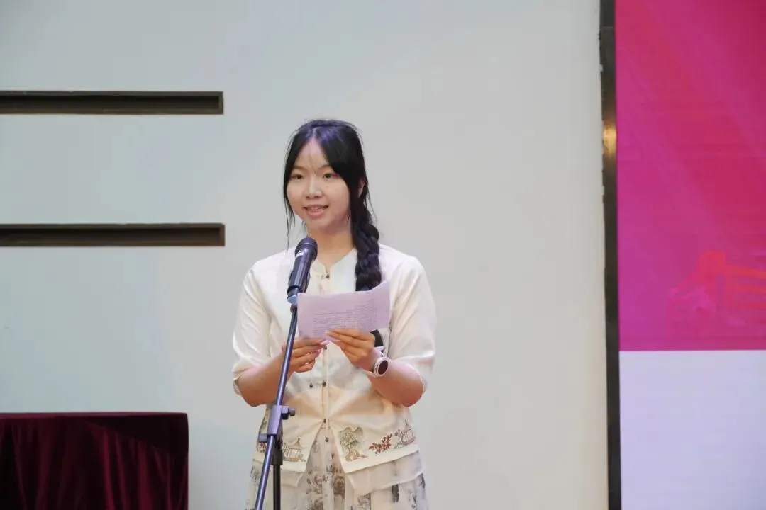 毕业生代表赵诗嘉在发言中回顾了毕业设计创作过程中的点滴感悟,表达了对老师们悉心指导的感恩之情。她倡议毕业生们以扎实的专业能力和创新精神投身设计实践,用设计讲好侨乡故事,用行动服务社会发展。