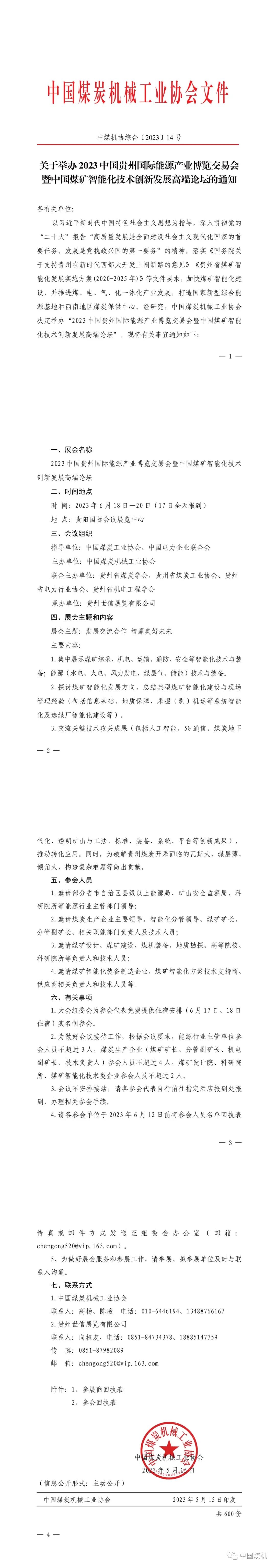 关于举办2023中国贵州国际能源产业博览交易会暨中国煤矿智能化技术创新发展高端论坛的通知