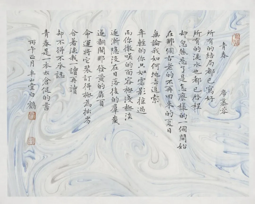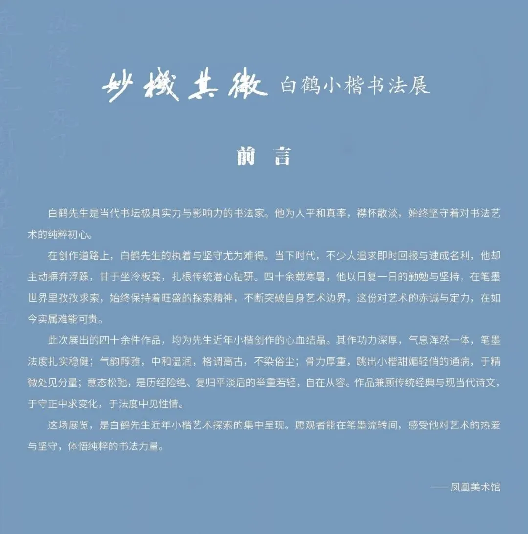 白鹤,安徽省太和县人,江苏省书法院展览部主任、专职书法家,一级美术师,中国书法家协会会员,江苏省书法家协会理事,中国致公党党员,南京艺术学院书法专业硕士研究生。 作品曾获全国第七届书法篆刻展览“全国奖”,“中国书法兰亭奖·美术金彩奖”提名奖,首届“杏花村汾酒集团杯”中国电视书法大赛金奖,第三届“林散之奖”书法双年展提名奖;首届中国书法院奖提名奖,《书法报》全国书法海选 “兰亭诸子奖”,江苏省文艺大奖·第四届江苏书法奖等重要奖项,数十次参加中国书协举办的各项展览。