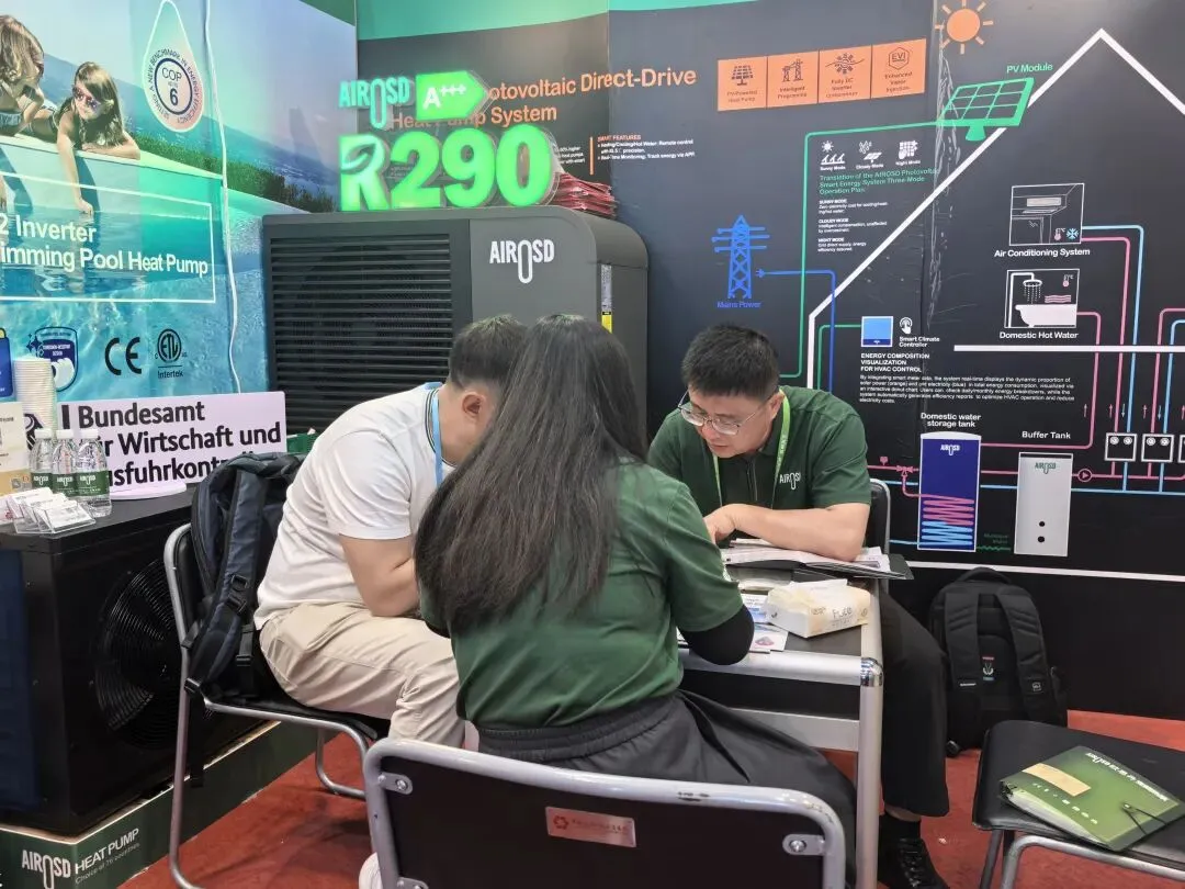 “这款采用R290环保冷媒的热泵机组,GWP值仅为3,完全符合欧盟最严苛的环保标准。”黄开晨指着展台核心展品介绍道。作为空气能热泵领域的隐形冠军,欧思丹此次带来的全场景解决方案覆盖家庭采暖、工业高温、农业烘干等多元领域,其搭载的自研AI控制系统尤为亮眼,能根据气候波动实时调节温湿度及空气质量,较前一代产品再降低15%的能耗。
