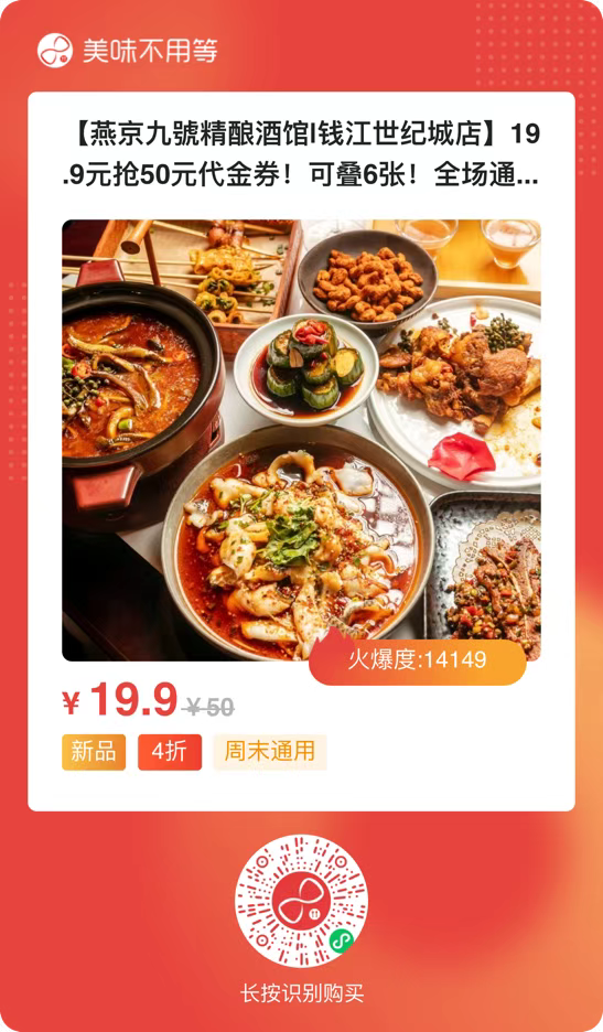 【燕京九號精酿酒馆|钱江世纪城店】19.9元抢50元代金券!可叠6张!全场通用!国风酒馆,现场演绎沉浸式体验!