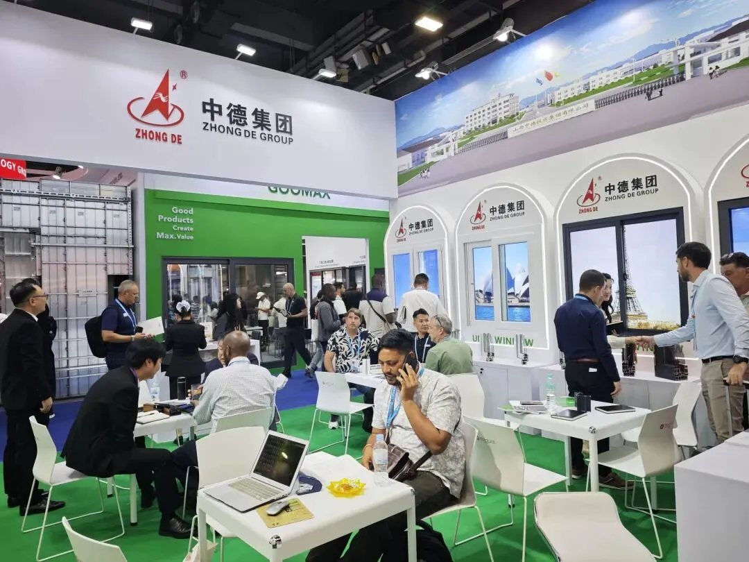 中德集团的展位设在B13.1展区,亮相的展品亮点纷呈、实力吸睛,有旗下塑钢型材、铝合金型材样角、塑料管道,更有适配家装领域的系统门窗、家装管道。产品涵盖标准住宅、大宅别墅、绿色建筑、智能人居、中式仿古、外贸出口等多个场景,今年针对市场需求,推出了“双奥之星”系列产品,进一步完善产品体系,精准贴合全球绿色转型趋势,为低碳发展注入新动能。不少海外客商驻足了解、深入交流,现场气氛热烈。