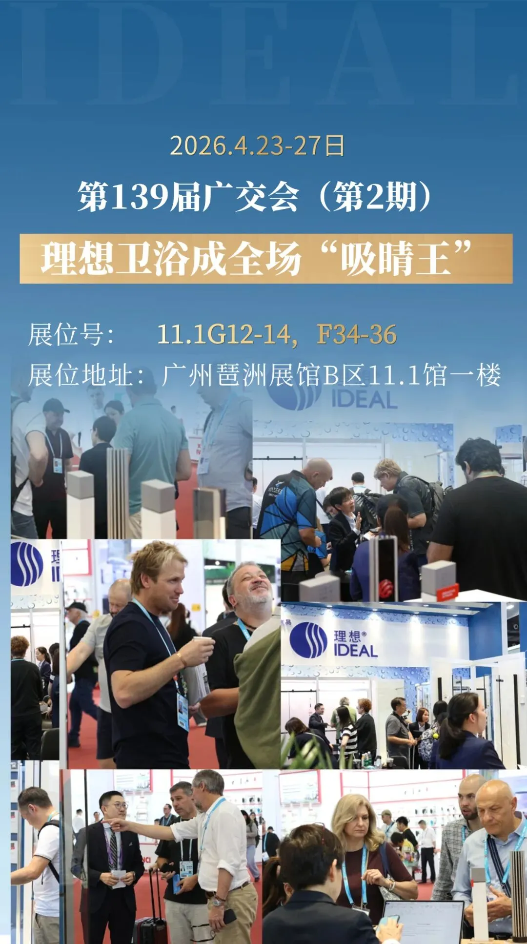 2026 年 4 月 23 - 27 日,第 139 届广交会(第二期)在广州琶洲国际会展中心盛大启幕。作为深耕淋浴房领域 31 年、出口量多年稳居行业头把交椅的佛山市理想卫浴有限公司,再度携高品质淋浴房精彩亮相,并凭借优异的品质、前瞻的设计、领先的技术和绿色智造等多维度优势,向全球客商展现中国高端卫浴制造的硬核实力与国际风范,在开展首日就备受关注,再次成为全场“吸睛王”!
