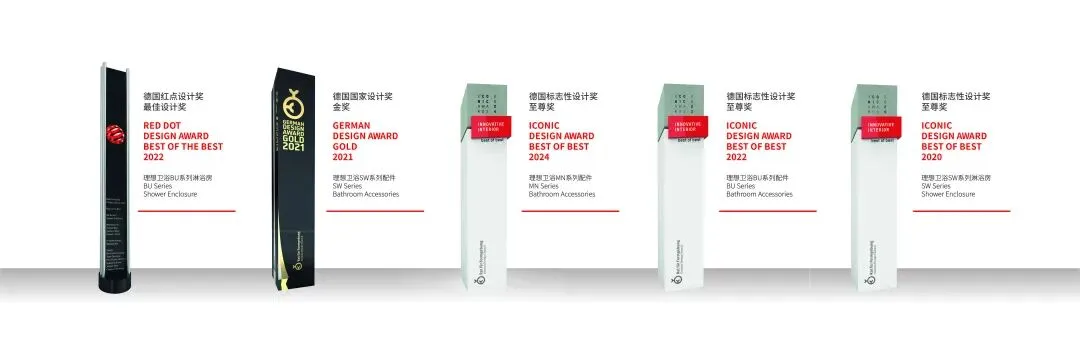 设计是理想卫浴的灵魂,依托德国设计中心的顶尖设计力量,融合德系精工极简美学与东方空间智慧,理想卫浴打造了一系列的兼具颜值、功能与人性化体验的高端淋浴房,并先后累计斩获包含红点设计奖最佳设计奖、德国国家设计奖金奖、德国标志性设计奖至尊奖、IF奖优胜奖、设计+奖优胜奖在内的41项德国高含金量设计大奖,用实打实的设计实力向世界证明,中国品牌不仅品质可靠,更具备引领潮流的设计魅力与创新能力。