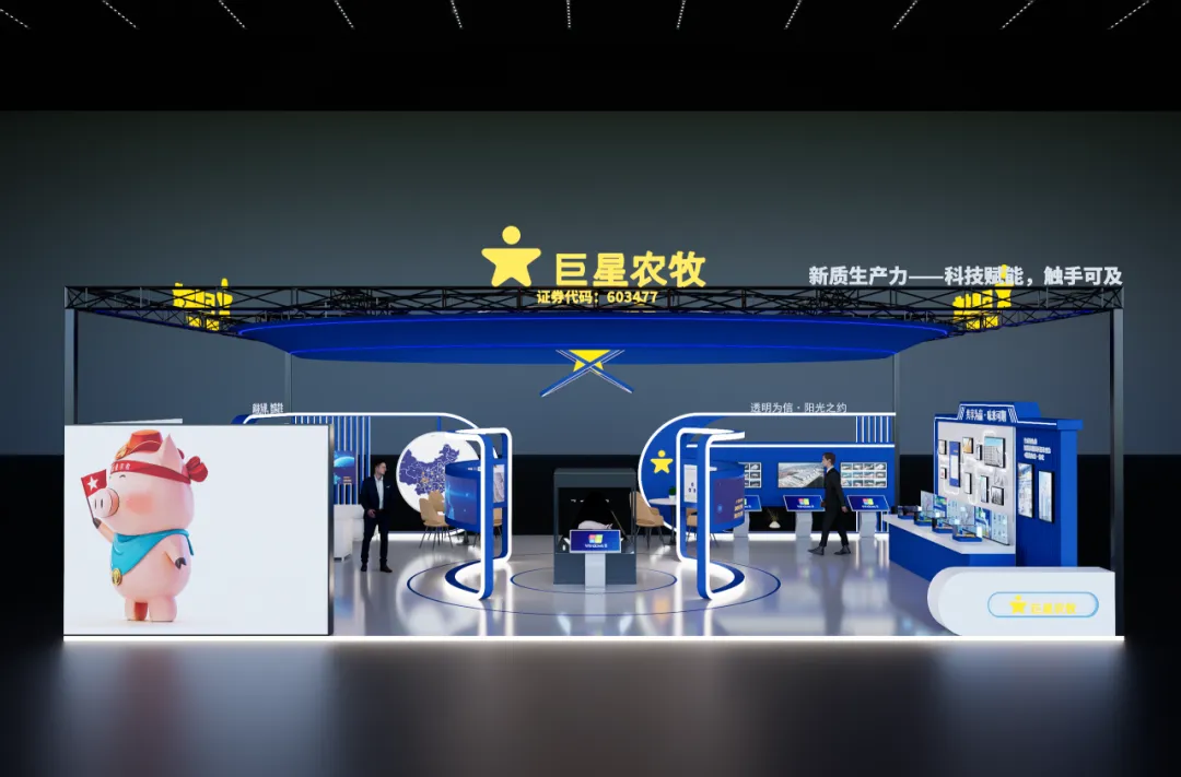 本次展会,我们精心打造了一座集科技、专业与互动于一体的现代化展台。现场将以专业的展陈设计、深度的内容展示及丰富的互动体验,为您全面呈现巨星农牧在智慧养殖、技术创新与产业升级上的最新实践与核心实力。