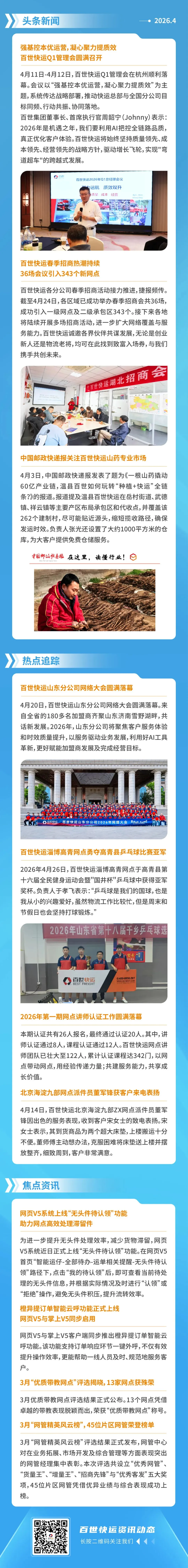 百世快运Q1管理会圆满召开;36场春季招商会引入343个网点|4月资讯速递