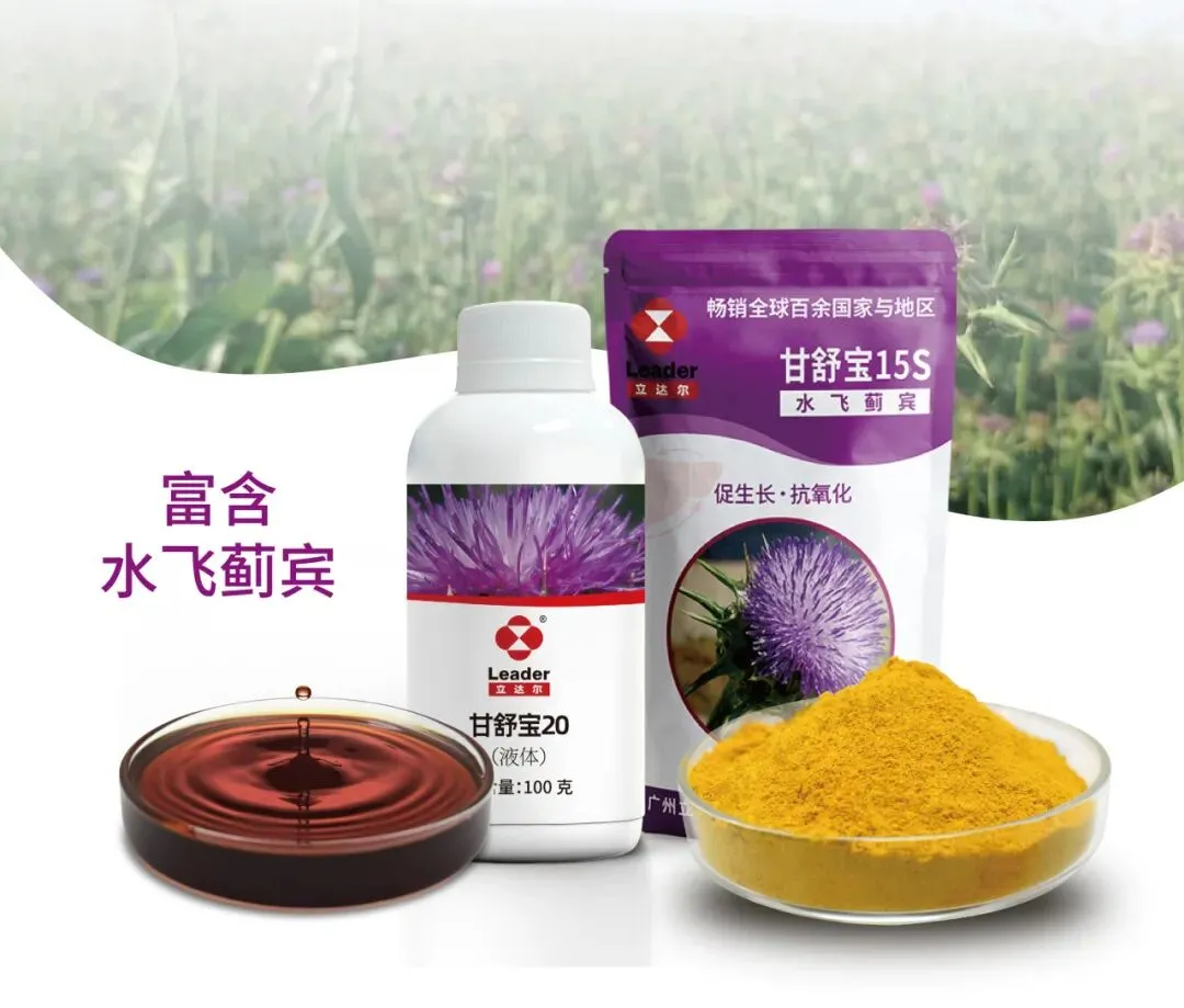 水飞蓟宾是从菊科植物水飞蓟Silybum marianum(L.)Gaertn.中提取所得的一种黄酮木脂素类化合物,具有保护肝脏、促进动物生长、提高机体抗氧化力和免疫力、调控脂质代谢、抗炎等方面的生理活性。