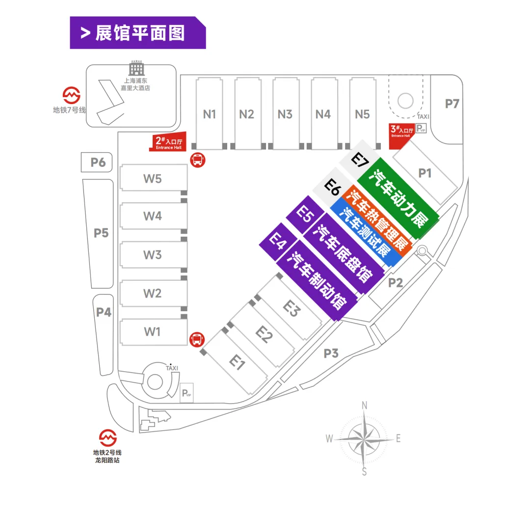 1)搭乘7号线至花木路站1号口从2号入口大厅(近W5馆和N1馆)入场,可搭乘馆内接驳车至E7馆。