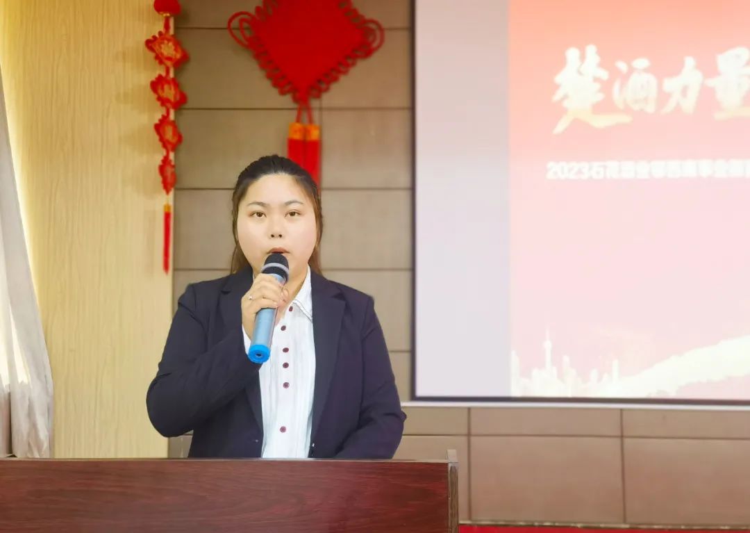 余金玲主席发表履职讲话。她对石花酒业提供的“金掌柜顾问团”平台致以真挚地感谢,并表示将一如既往的携手石花酒业一起成长,用崭新的业绩谱写石花酒业高质量发展的新篇章。