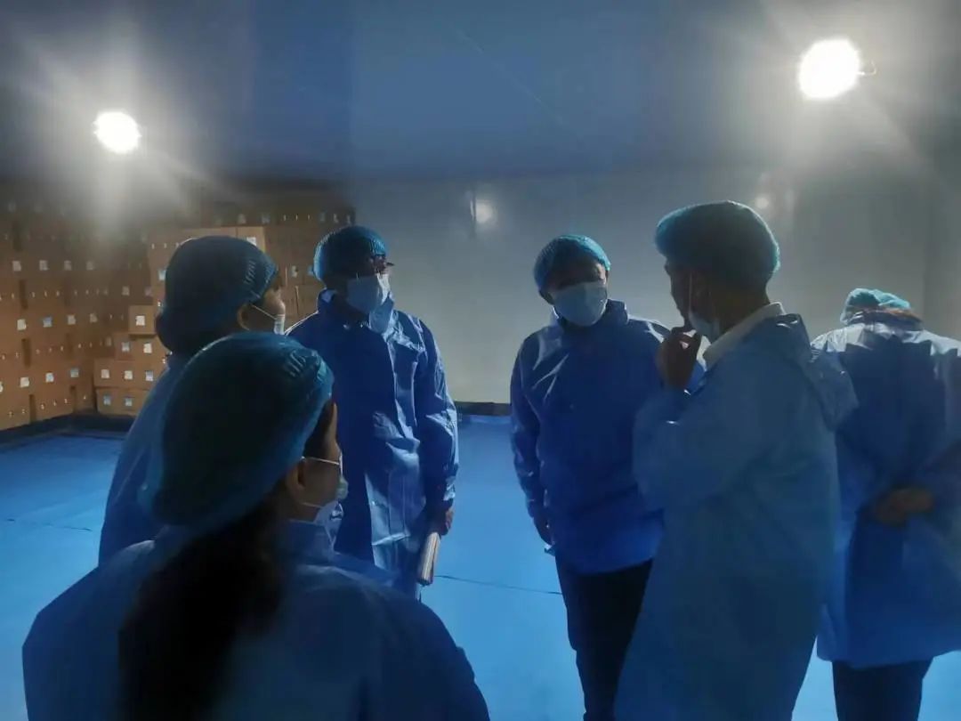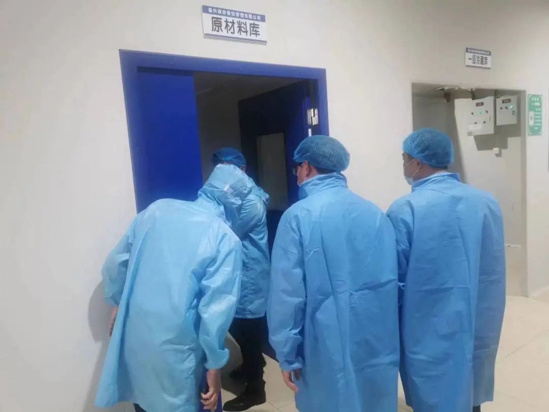为了食品安全,全体代表统一身穿防尘外套、带好一次性头套和口罩,在管理人员陪同下考察备餐情况。