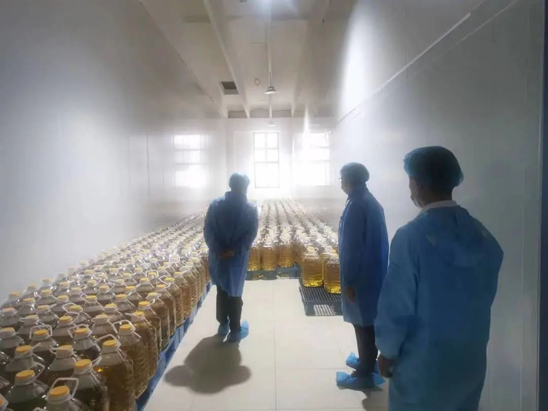 家长代表们还走进仓库,对用餐的原料进行考察。