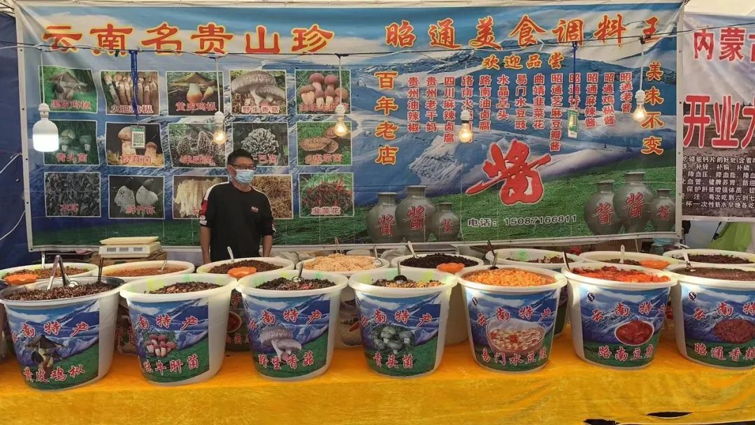 展销商品有:本地美食、各地特色美食,农副产品、服装百货、珠宝玉石、大小五金、儿童娱乐等。