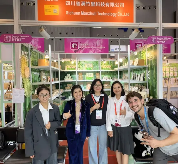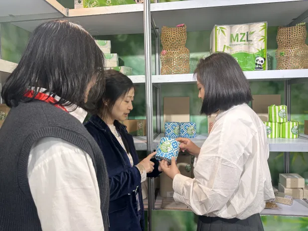 调研团队重点关注了文化创意与跨境电商展区,并走访了眉山市代表性参展企业——四川省满竹里科技有限公司与四川省匠心竹贸有限公司。在交流中,校企双方围绕三苏文化、竹编技艺、眉山泡菜等本土特色资源的现代化开发与国际传播展开探讨,探索“文化IP+产品设计+跨境营销”融合路径。如何将眉山深厚的历史文化与产业资源,转化为具有国际辨识度的文创商品与品牌故事,是推动地方产业出海的重要课题,也是高校服务地方、优化人才培养的切入点。