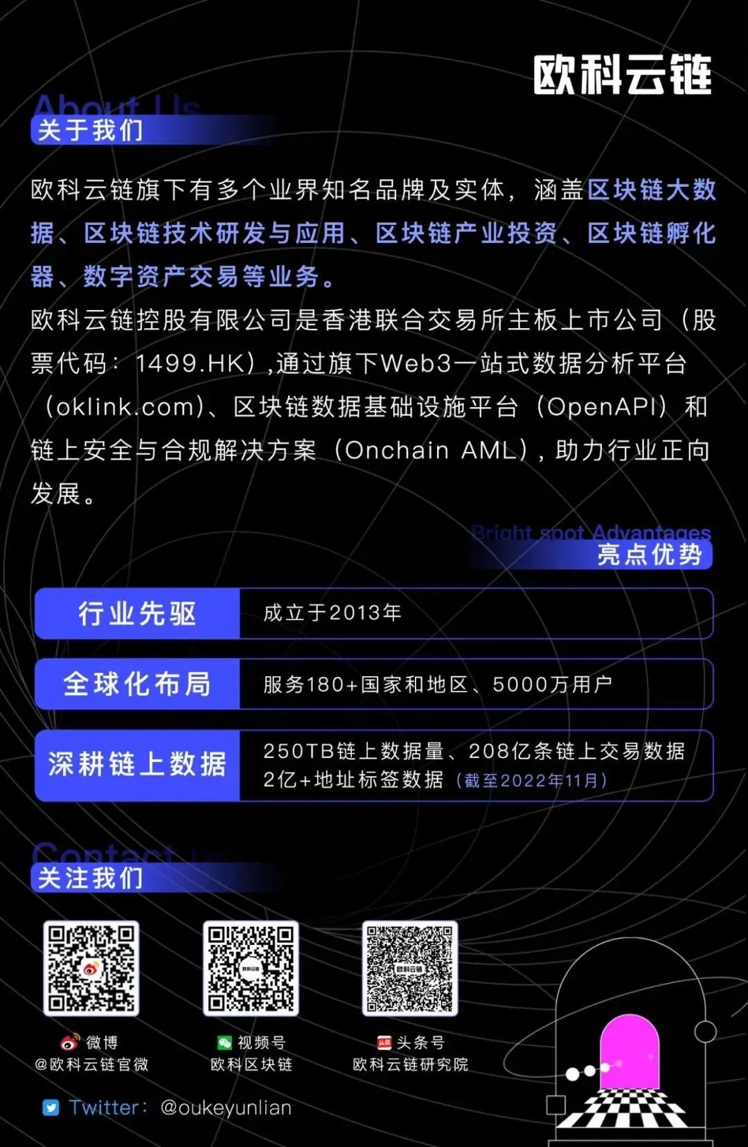保障区块链行业的健康发展,也需要多方的努力和推动,2022年12月,作为区块链安全领域的先行者,欧科云链也联合各方起草区块链团体服务标准及成立“全球Web3数据联盟”,呼吁Web3科技企业共建共享繁荣的链上生态,为行业发展起到更正向的作用。
