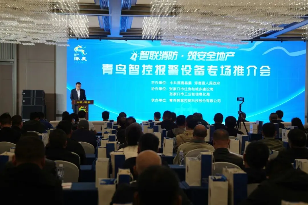 2026年4月29日,为精准对接张家口全市房地产开发项目需求,全面推介青鸟智慧控制科技股份有限公司(以下简称 “青鸟智控”)火灾自动报警、智能疏散、电气火灾监控等核心设备及智慧消防整体解决方案,搭建政企高效对接平台,筑牢房地产行业消防安全防线,助力优质消防产品在本地地产项目落地应用,青鸟智控报警设备专场推介会在张家口市成功举办。涿鹿县县委副书记、人民政府县长米国良、张家口市人民政府副秘书长李小龙、张家口市住建局消防专家马海兵,青鸟智控总经理康亚臻、行业应用中心经理刘敏等政企领导及行业嘉宾齐聚现场,共探青鸟智控消防设备与解决方案在地产领域的应用路径,共商企业与政府协同合作、共赢发展的新方向。