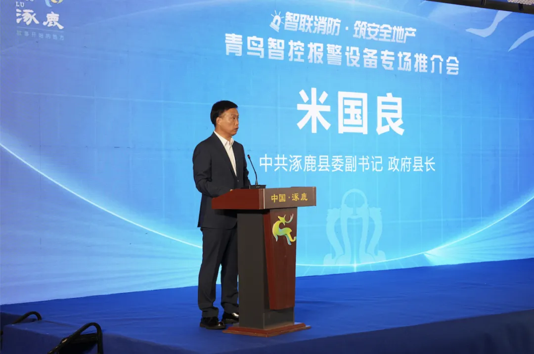 涿鹿县县委副书记、人民政府县长米国良为大会致开幕辞,指出青鸟智控是涿鹿本土培育壮大的上市龙头企业,长期专注消防电子与智慧安全领域,技术研发实力雄厚、创新成果丰硕,其自主研发的核心芯片成功打破国外技术垄断,为涿鹿县产业转型升级、实体经济高质量发展注入了强劲动能。