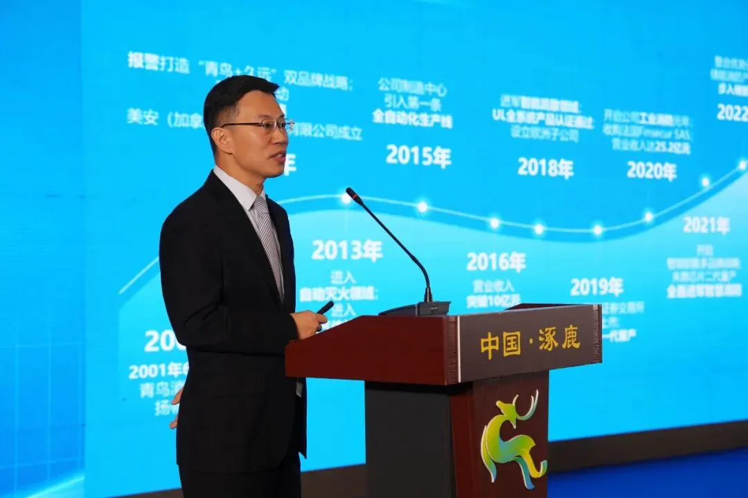 张家口市人民政府副秘书长李小龙作推介环节总结讲话,代表市政府对本次活动圆满举办表示祝贺。他指出,青鸟智控作为本地上市龙头企业,2025年产值达46.97亿元,自主研发核心芯片打破国外垄断,有力带动地方产业集群发展。当前消防产业正加速迈向智能化,市委市政府高度重视消防安全工作,将持续优化营商环境,全力支持青鸟智控等本土龙头企业做强做优,推动消防产业与各领域深度融合、协同发展。